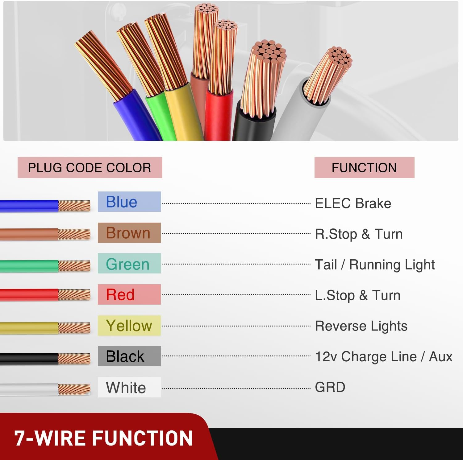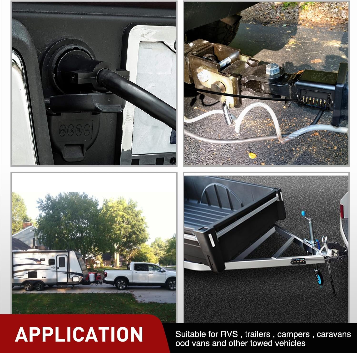 - Versatile Applications: Perfect for connecting tail, brake, reverse, turn signals and auxiliary power of your trailers, RVs, campers, caravans, food vans and other towed vehicles. Please read the diagram carefully before any operations on the product.